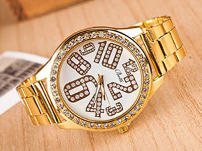 Ladies fashion Watch Crystal Elegant Watch Golden Mesh for Casual Dress, be stylish AED 119 only