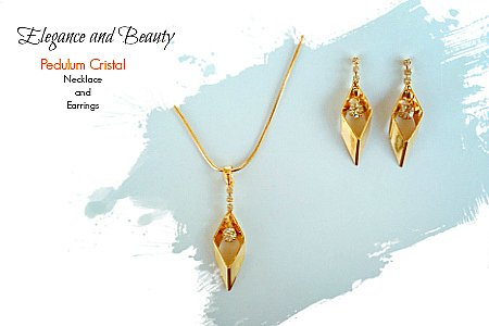 • 186Pendulum Cristal Necklace and Earrings - GOLD(% discount)