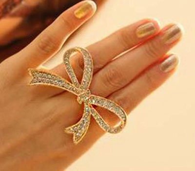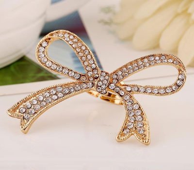 Bling Rhinestones Butterfly Knot Ring Opened Adjustable Ring AED99