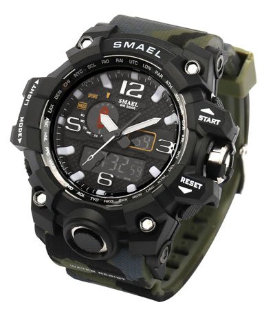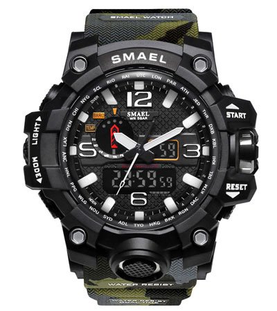 SMAEL Brand Sports Watches Men Dual Time Camouflage Military Watch Men Army LED Digital Wristwatch 50M Waterproof Clock AED199 only