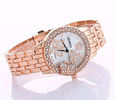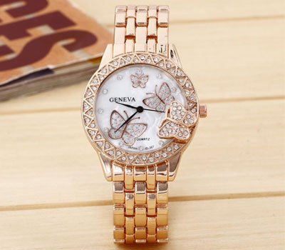 2017 New Famous Brand Gold Crystal Butterfly Geneva Casual Quartz Watch Women Stainless Steel for AED199 Only