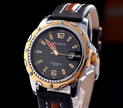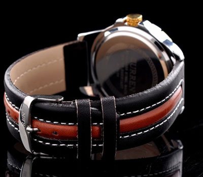 This Curren Silvertone stainless steel watch features a fashio