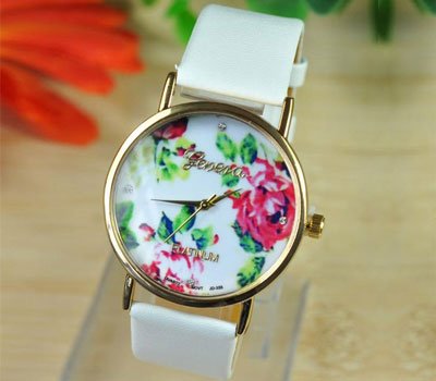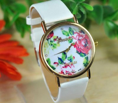 Geneva Platinum Rose Flower Watch. Ladies and Girls Floral white Leather Wristwatch Women Quartz Watch. BIG SALE Only AED149