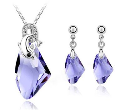 Ocean Heart Pendant Chain Necklace and Earrings made of Austri
