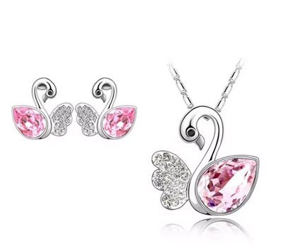 SWAROWSKI Element Austrian Crystal Swan Pendant Necklace and Earrings Jewellery Set