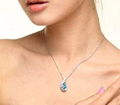 Sky Blue Crystal Wings A beautifully crafted White Gold Plated Crystal Necklace & Earring Set. AED149