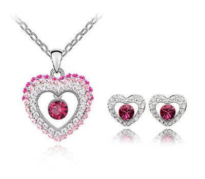 • 149Open Heart Charm Jewellery Set - Pink(% discount)
