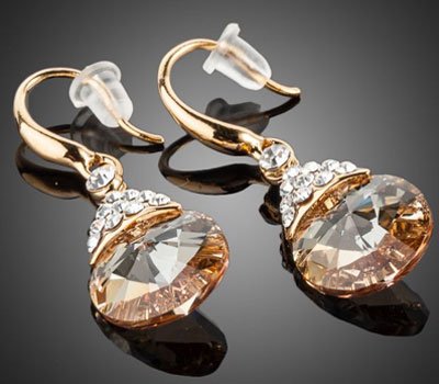 18K Rose Gold Plated Gold Round SWA ELEMENTS Austrian Crystal Drop Earrings AED150. LIMITED EDITION