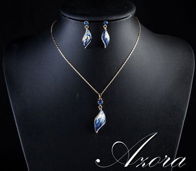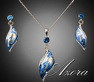 Latest Fashion Design 18K Rose Gold Plated Blue Oil Painting Pattern Drop Earrings and Necklace Jewelry Set AED299 Only. LIMITED EDITION