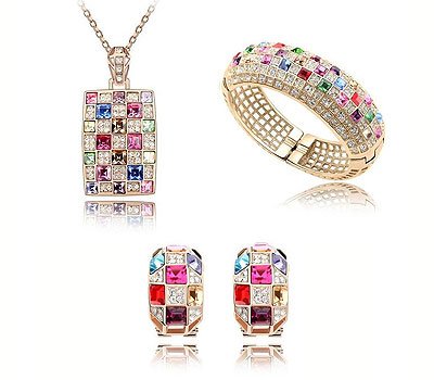 The Queen Necklace, Earrings & Bracelet Set, Gold Plated Chain Austrian CRYSTAL Pendant Necklace Earrings and Bracelet Set AED250