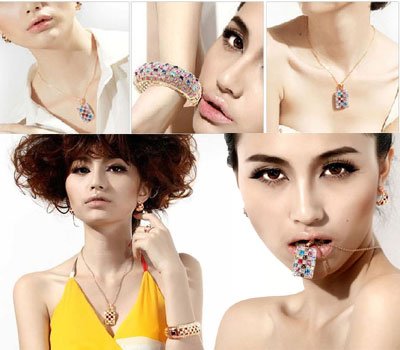 Colorful Swarovski Elements crystal necklace, chain and earrin