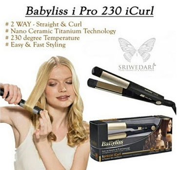 Straightens or curls in just 1 stroke with BABYLISS ipro 230 iCurl (2 in 1). Nano Titanium Ceramic 230°C for AED 119 Only