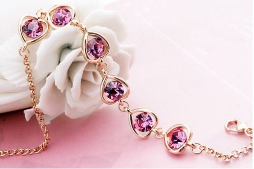 • 19918k Gold-Plated Crystal Heart Jewelry Set - PINK(% discount)