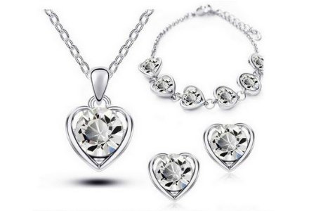 • 199Sterling Silver Crystal Heart Jewelry Set - CLEAR WHITE(% discount)