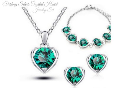 • 199Sterling Silver Crystal Heart Jewelry Set - GREEN(% discount)