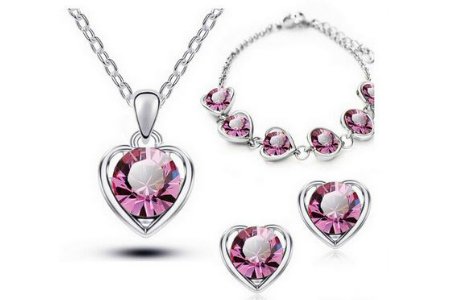 • 199Sterling Silver Crystal Heart Jewelry Set - PINK(% discount)