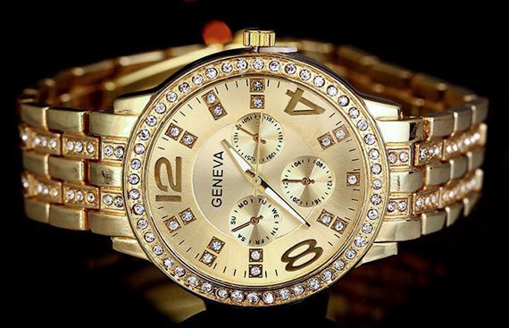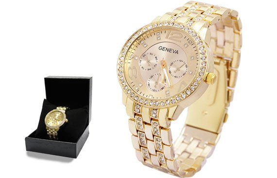 New Famous Brand Gold Crystal Geneva Casual Quartz Watch Women Stainless Steel for AED69 only