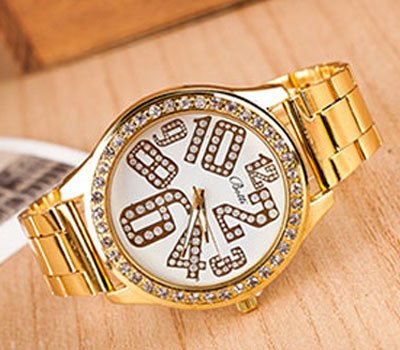 Ladies Fashion Crystal Elegant Women Watch. Golden color, Casu