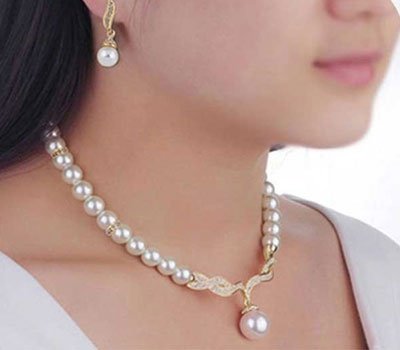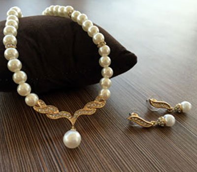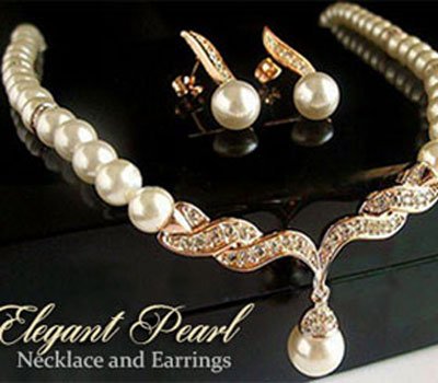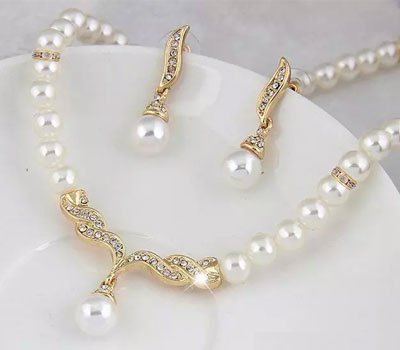Elegant Pearl necklace and earrings with swarovski elements, Gold Plated Hand-Made AED199
