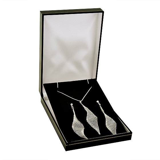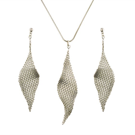 Spice up your outfit with this simple, elegant Dangling Silver Lining Necklace and Earrings.