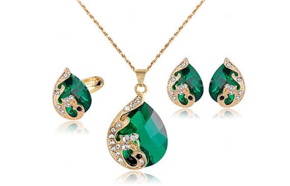 • 69Swarovski Green Peacock Jewelry Set(% discount)